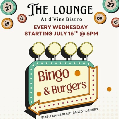 It's the 2nd Wednesday of the month for Ladies night so let's meet at the D'Vine Bistro for yummy burgers and silly Bingo!